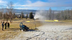 “We are hoping over the next few days that we get a good base going which is mostly ice right now. Once we get that base going we can continue to make snow and if Mother Nature co-operates we’ll have a great opportunity to use the rails and hopefully with the snow making machine we can add up to six weeks more usable time on the rails. Our big event that we use the snow rails for is usually Family Day weekend in February so if everything goes well we will be able to do that again.”