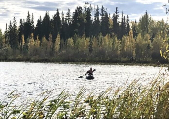 “A citizen came upon the canoe and noted the overturned canoe and subject, and that citizen called the RCMP. The fisherman managed to drift to a swampy area on the west side of the lake holding onto his canoe.”