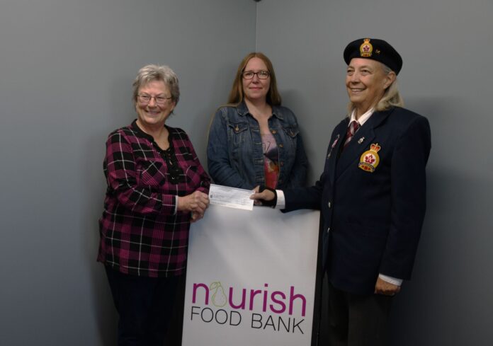The Women’s Auxiliary for the Royal Canadian Legion branch 94 handed a sizeable donation to the Nourish Food Bank in Quesnel on Oct 8.