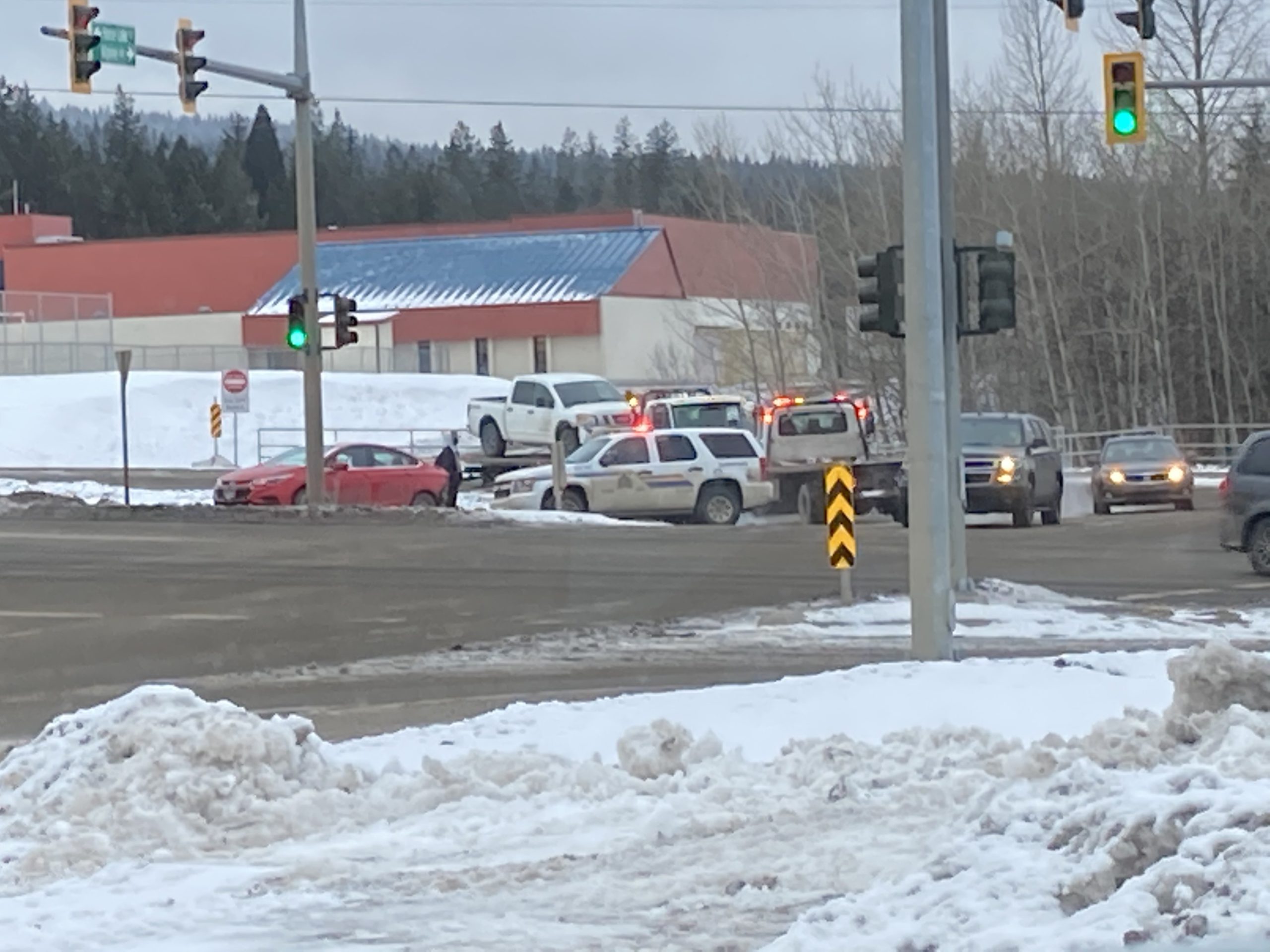 100 Mile House Emergency services were called to the scene of a two-vehicle collision at the intersection of Horse Lake Road and Highway 97 Wednesday morning.