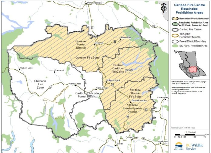 BC Wildfire Service has rescinded the Category 1 campfire prohibition as of noon today (September 7).