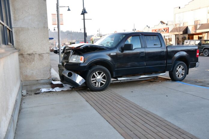“While attempting to park, an 81-year old woman drove her pickup truck up over the curb and struck the side of the Canada Post building. There was minor damage to the building but significant damage to the vehicle.”
