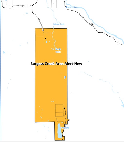 An Evacuation Alert was issued for six parcels in the Burgess Creek Area between Williams Lake and Quesnel.